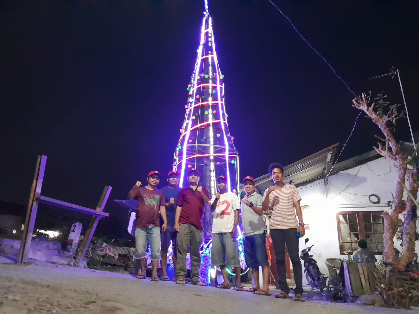 “Puji sukur kepada Tuhan berkat semangat gotong royong bersama- sama masyarakat pengerjaan pohon natal selesai dibuat dan sudah berdiri tegak dengan berbagai hiasan dan lampu menambah semangat dan kemeriahan menyambut Natal tahun ini. “Kata Benget.