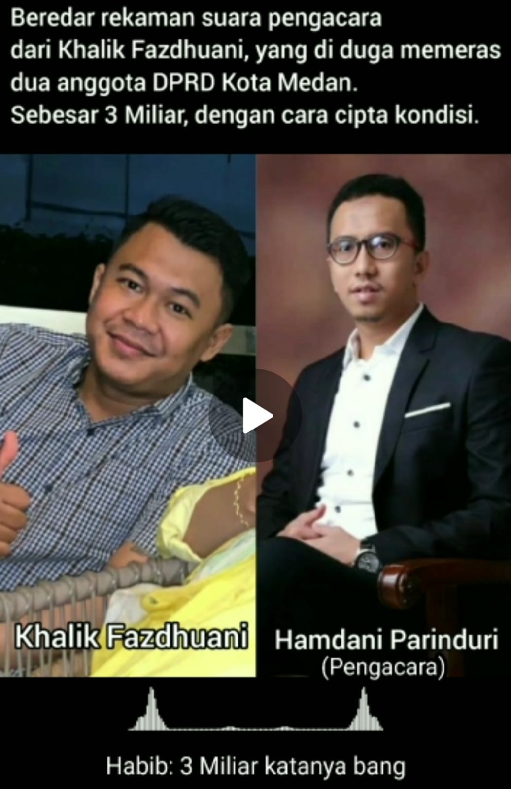 Isi dalam rekaman suara tersebut merekam percakapan antara Hamdani Parinduri dengan salah satu anggota DPRD Kota Medan yang mengarah dengan dugaan pemerasan.