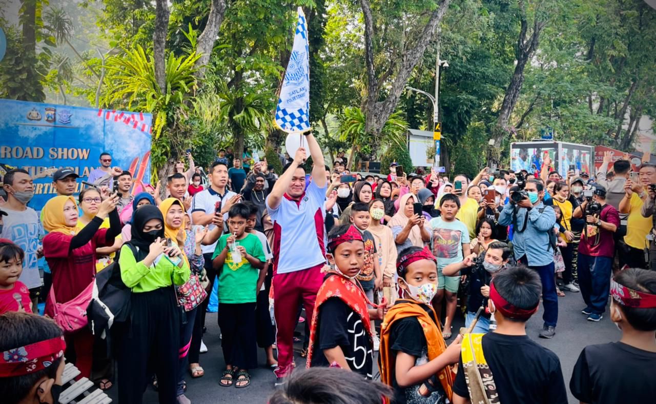 SURABAYA – Dalam rangkaian HUT Lantas yang ke 67, Sat Lantas Polrestabes Surabaya gelar Road Show Kamseltibcarlantas Surabaya tertib berlalu lintas, yang dilaksanakan pada Minggu (11/9/2022) pagi, pada saat masyarakat melaksanakan Car free day di Taman Bungkul Surabaya.