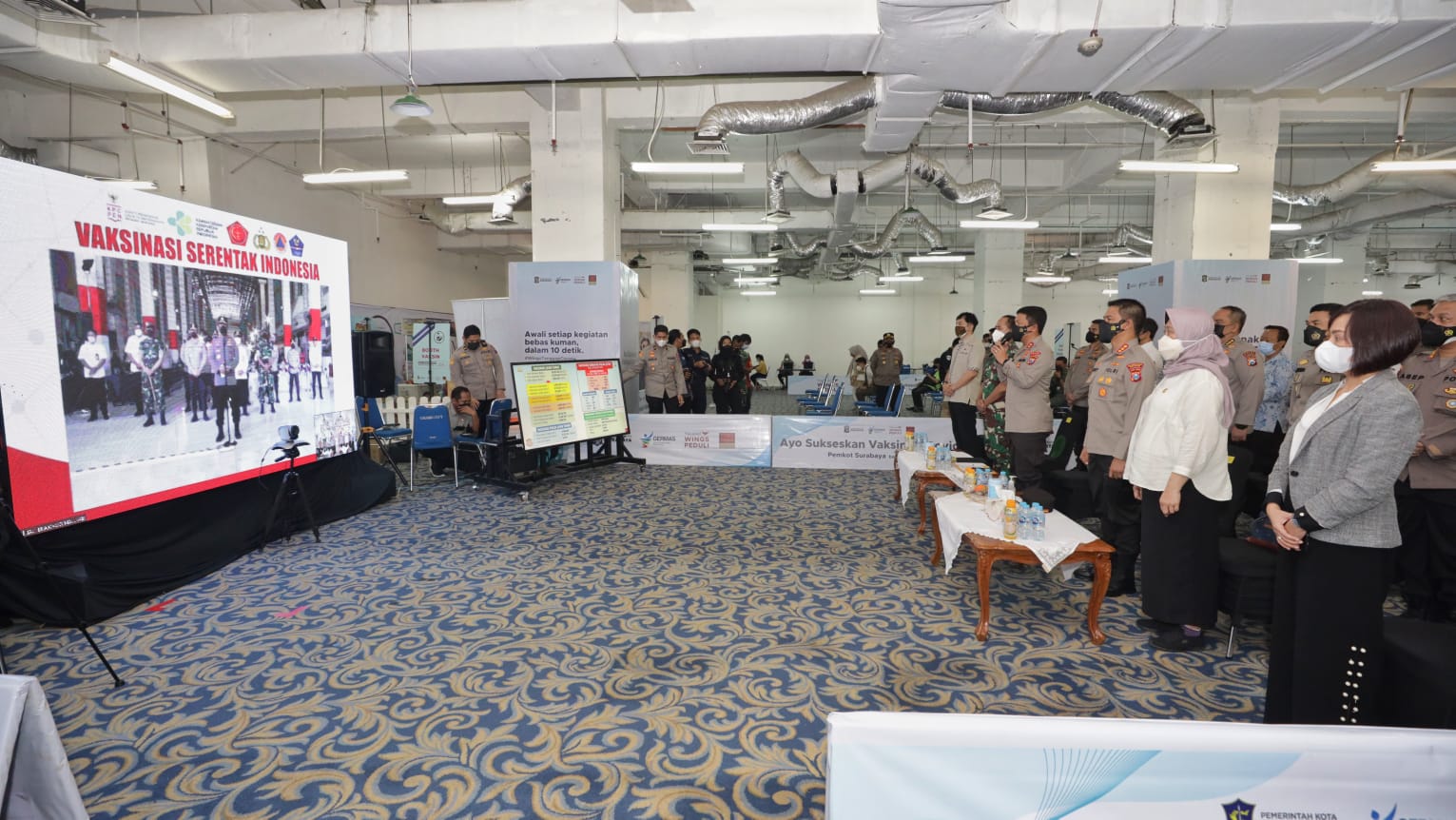 Selain mengecek pelaksanaan vaksinasi, Kapolda jatim juga mengikuti zoom metting dan berdialog interaktif secara virtual dengan Kapolri Jendral Polisi Listyo Sigit Prabowo. Dalam rangka Vaksinasi Covid-19 Serentak di Indonesia.