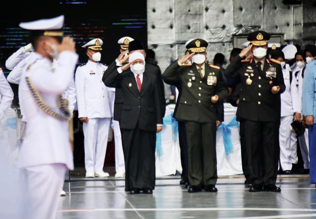 Jaringannews.com,Jatim – Forkopimda Jatim mengikuti pelaksanaan Upacara Tabur Bunga memperingati Hari Dharma Samudera di KRI dr.Wahidin Sudirohusodo-991, pada Sabtu, (15/1/2022).