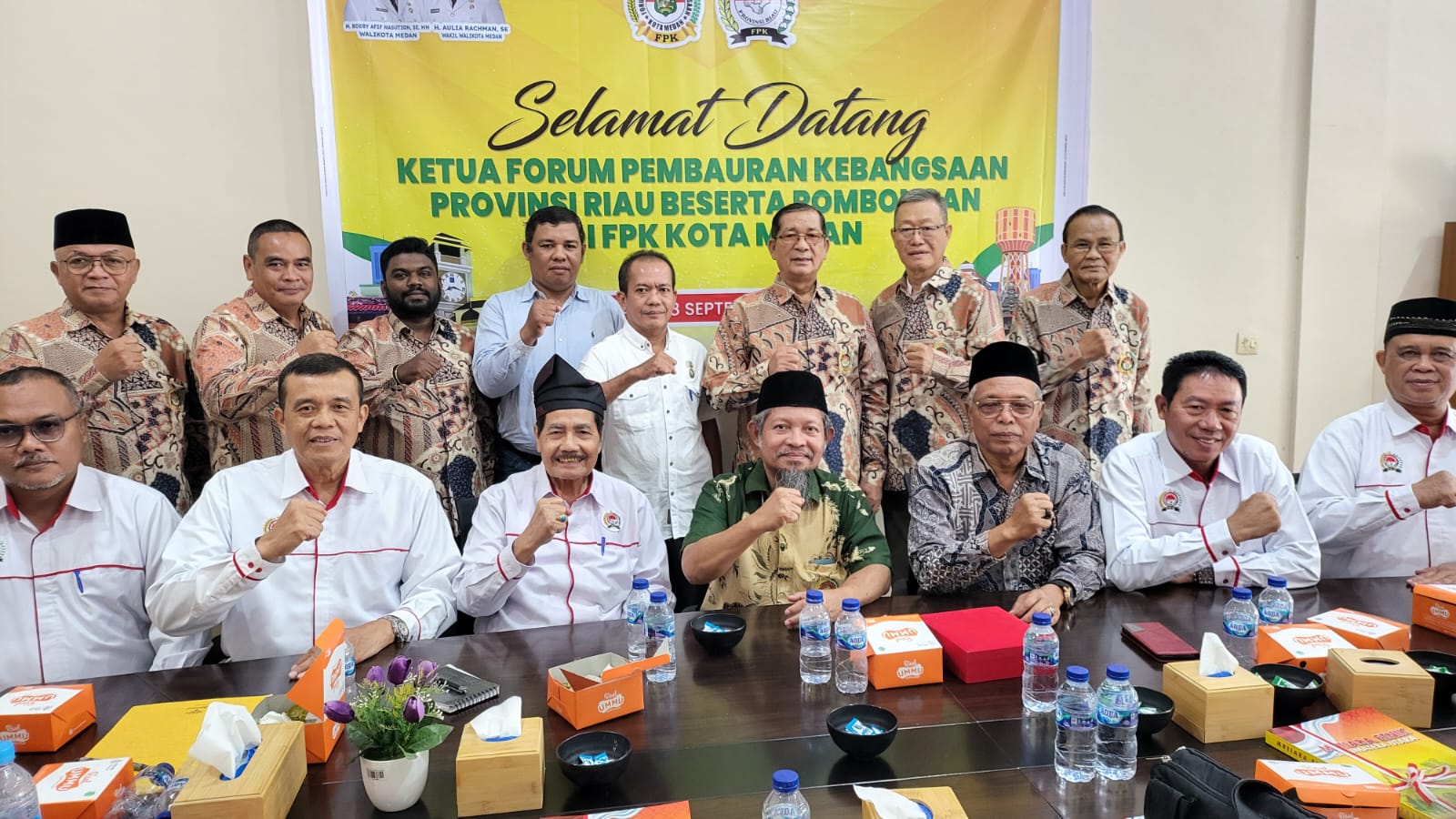 MEDAN – Forum Pembauran Kebangsaan (FPK) Kota Medan menyambut hangat kehadiran rombongan dari FPK Provinsi Riau di Komplek Setia Budi Centre, Medan, Rabu (18/9/2024). Silaturrahmi yang dihiasi nuansa keakraban ini dipenuhi dengan saling memberi masukan untuk perkembangan masing-masing lembaga.