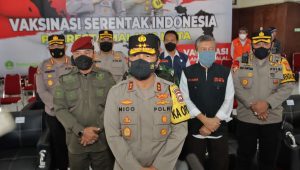 Kegiatan vaksinasi serentak inipun terkoneksi secara virtual dengan kegiatan yang sama di seluruh indonesia yang diikuti oleh Kapolri Jendral Polisi Listyo Sigit Prabowo dari lokasi vaksinasi di Cikarang Bekasi Jawa barat.
