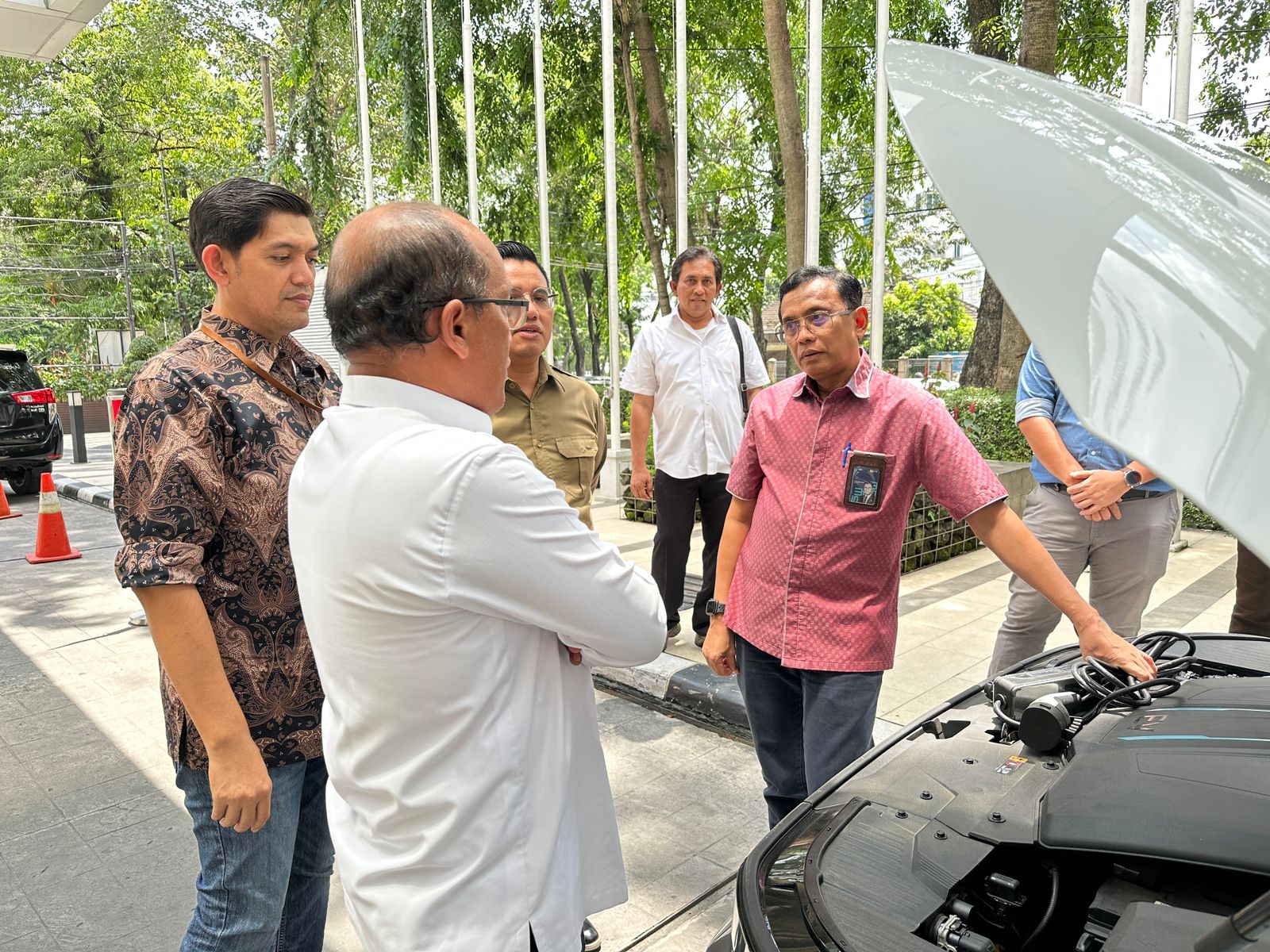 Awaluddin memperkenalkan salah satu kendaraan listrik yang ada di Sumatera Utara kepada Rudianto Saragih Napitu, S.Si. M.Si, Kepala Balai Besar KSDA Sumatera Utara dan Kepada Dinas Lingkungan Hidup Kabupaten Toba di Hotel Santika Premiere (31/5).