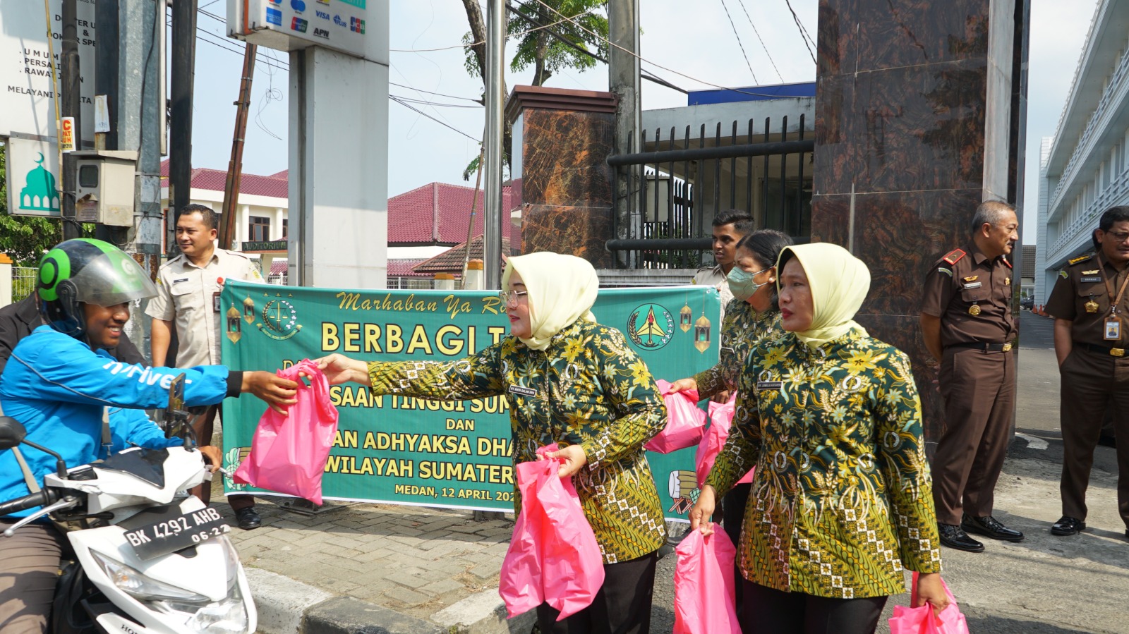 Menurut Kasi Penkum Kejati Sumut Yos A Tarigan, sebelum acara pembagian takjil berkah Ramadan, pengurus IAD Wilayah Sumut membagikan sembako kepada pegawai honor, cleaning service dan security.
