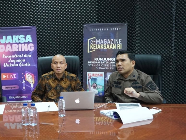 MEDAN – Jaksa Daring (konsultasi hukum gratis) yang digelar Kejati Sumut lewat akun media sosial IG @kejatisumut usung topik tentang Peningkatan Penggunaan Produksi Dalam Negeri (P3DN) pada kegiatan Pengadaan Barang/Jasa, Kamis (9/3/2023) secara live dari kantor Kejati Sumut, Jalan AH Nasution Medan.