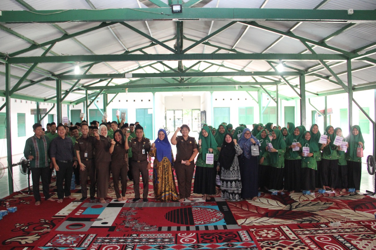Di akhir kegiatan, Ghufran beserta tim dari Penkum memberikan cenderamata kepada Eli Juliati dan berharap apa yang disampaikan bisa bermanfaat bagi santri dan santriwati.