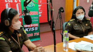 Kegiatan Jaksa Menyapa dipandu Galuh sebagai penyiar KISS FM Medan, dengan pembicara Joice V Sinaga, SH dan Lamria Sianturi, SH,MKn (Jaksa Fungsional di Bidang Intelijen Kejati Sumut).