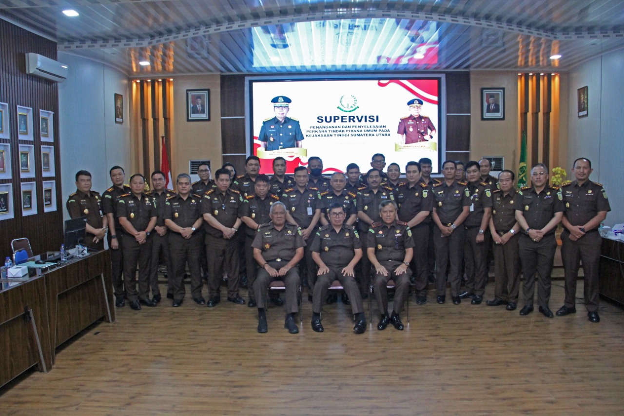 MEDAN-Jaksa Agung Muda Bidang Tindak Pidana Umum (JAMPIDUM) Kejaksaan Agung RI Dr. Fadil Zumhana melakukan supervisi ke wilayah hukum Kejaksaan Tinggi Sumatera Utara, yang diikuti Kajati Sumut Idianto,SH,MH, Wakajati Asnawi,SH,MH, para Asisten, para Kajari, para Kacabjari, para Kasi Pidum serta jajaran bidang Pidum Kejati Sumut di Aula Sasana Cipta Kerta Lantai 3 Kantor Kejati Sumut Jalan AH Nasution Medan, Jumat (21/10/2022).