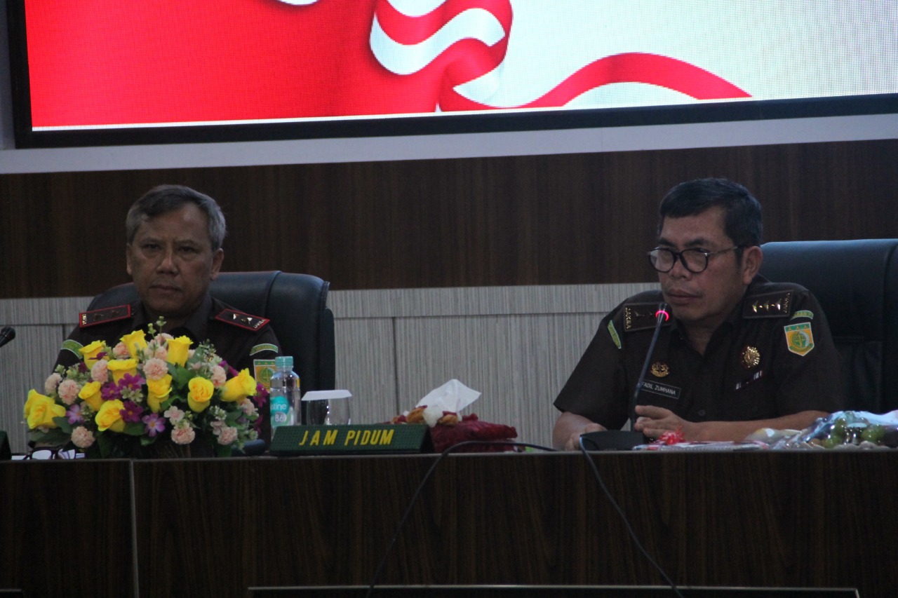Kedatangan JAMPIDUM Kejagung RI Dr Fadil Zumhana dengan agenda prioritas supevisi pidum meliputi penyelesaian perkara tindak pidana umum berdasar Restorative Justice (RJ), optimalisasi rumah RJ, optimalisasi aplikasi Case Management System (CMS), dan penyelesaian tunggakan perkara pidum dan barang bukti.
