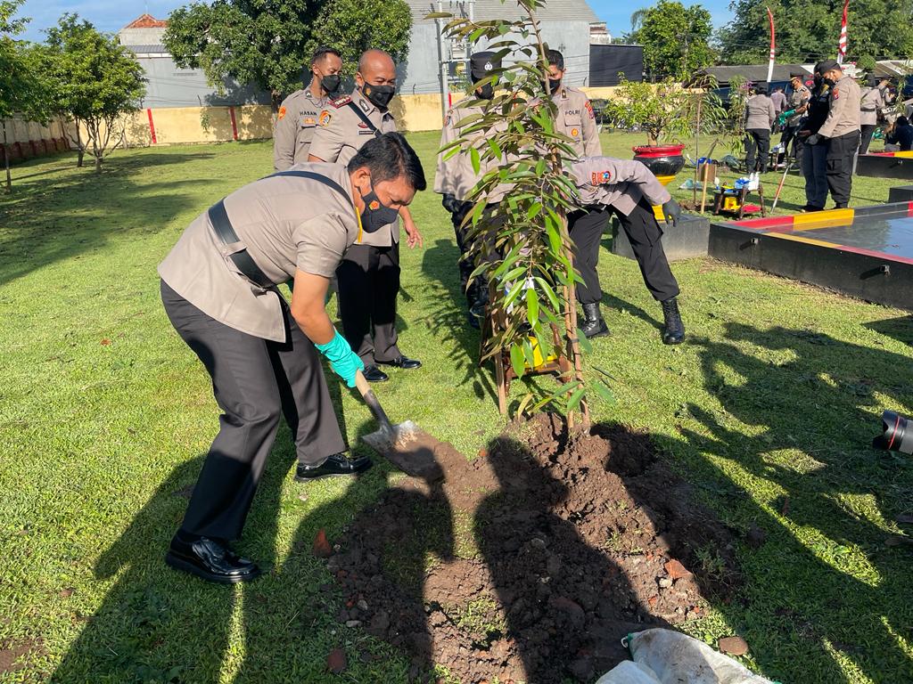 Seusai pelaksanaan upacara dilakukan penanaman pohon yang tersebar di lingkungan SPN Jawa Timur sebanyak 500 pohon dan penanaman secara simbolis di depan Gedung Tri Brata SPN Polda Jawa timur oleh Kapolda Jatim didampingi Pejabat Utama Polda Jatim.