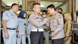 Jatim – Kapolda Jawa Timur Irjen Pol Nico Afinta dan Wakapolda Jawa Timur Brigjen Pol Slamet Hadi Supraptoyo bersama Pejabat Utama Polda Jatim, mendampingi kunjungan kerja Kakorlantas Polri Irjen. Pol. Firman Santyabudi beserta rombongan diantaranya Dirregident Korlantas Polri Brigjen Pol Yusri, Dirut PT Jasa Raharja Rivab Achmad Purwantoro dalam rangka silaturahmi dan kunjungan kerja tim pembina Samsat Nasional di Provinsi Jawa Timur. Kamis (11/8/2022).