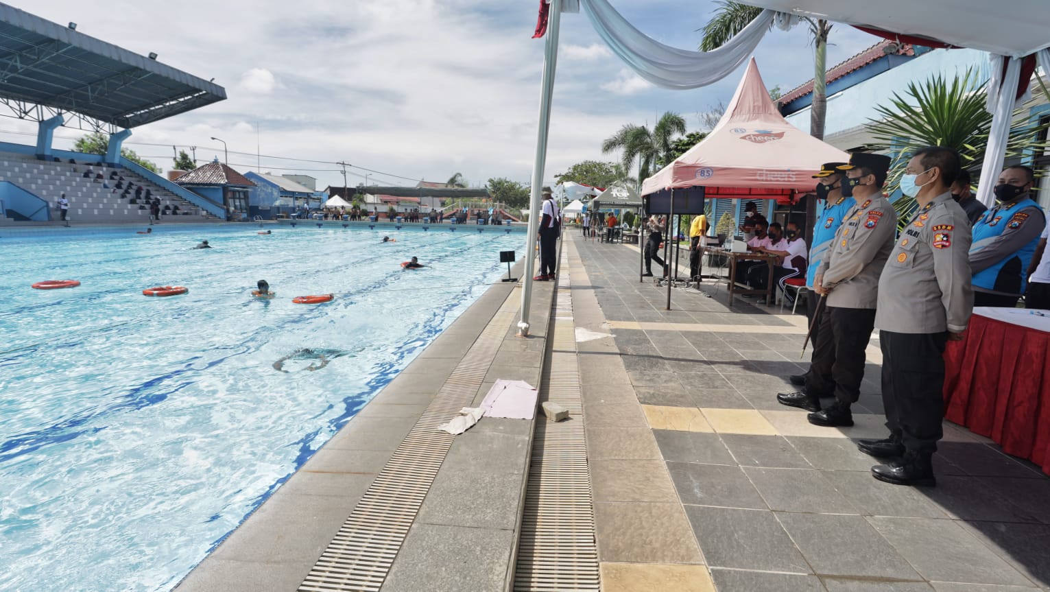 “Pengecekan pelaksanaan seleksi penerimaan Bintara Polri Gelombang II T.A. 2022 Panda Jatim tahap Tes Kesamaptaan Jasmani sebanyak 4.100 calon siswa. Pelaksanaan pengecekan meliputi semua tahapan seleksi tes kesamaptaan jasmani mulai dari Pull up, Push up, Sit up, Shuttle run dan Renang,” kata Irjen Nico.