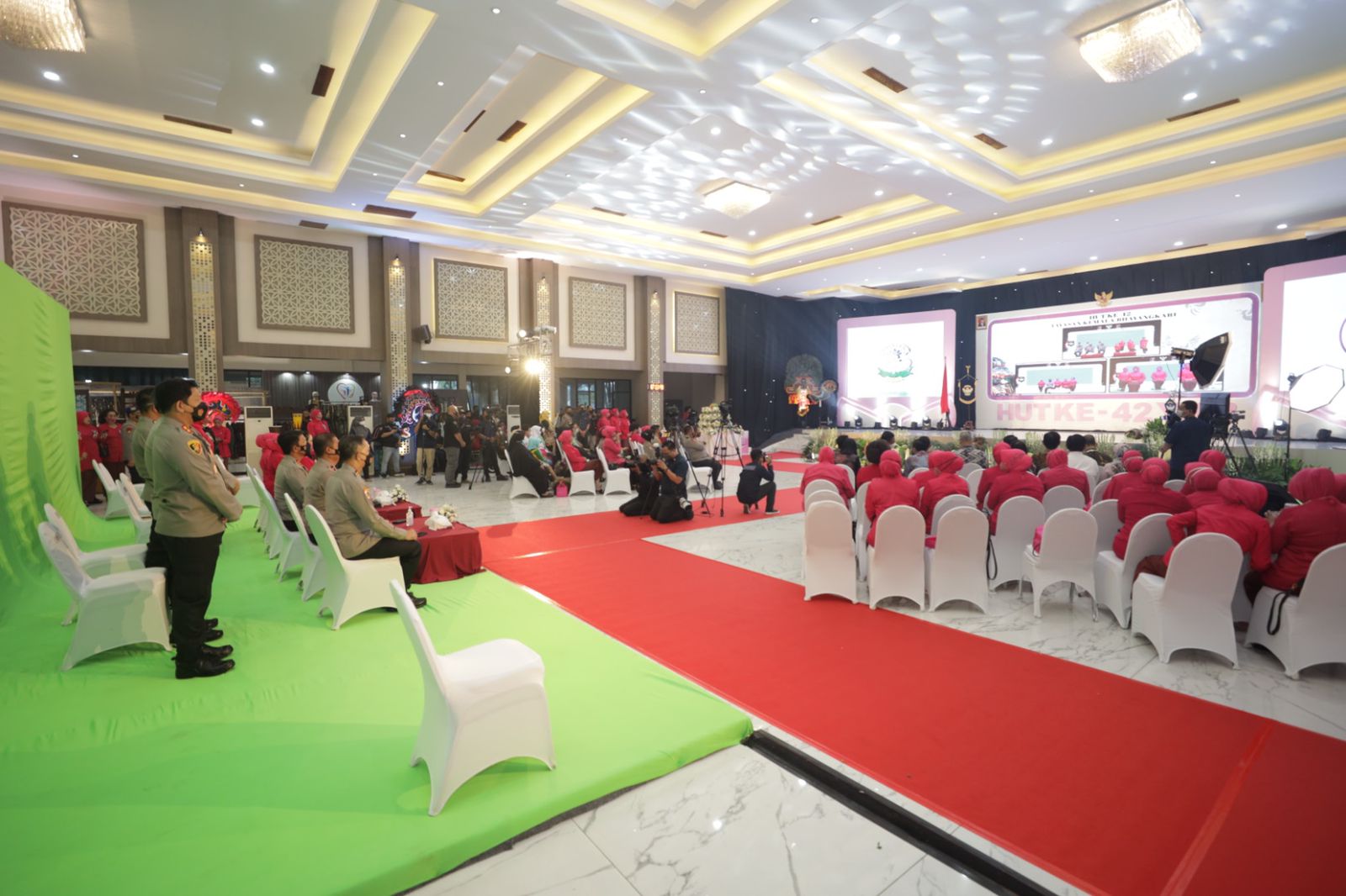 Jaringannews.com,Surabaya- Kapolda Jawa Timur Irjen Pol Nico Afinta bersama Wakapolda Jawa Timur Brigjen Pol Slamet Hadi Supraptoyo dan pejabat utama polda jatim mengikuti Upacara secara virtual Peringatan HUT Ke-42 Yayasan Kemala Bhayangkari terpusat di Gedung Mahameru Polda jatim pada hari Senin (23/5/2022) yang diselenggarakan dari Ruang Astagina Gedung Bhayangkari Jalan Sriwijaya I Kebayoran Baru Jakarta Selatan.