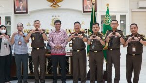 MEDAN – Kepala Kejaksaan Tinggi Sumatera Utara (Kajati Sumut) Idianto, SH,MH didampingi Wakajati Sumut Asnawi, SH,MH, Asintel I Made Sudarmawan, SH,MH, Aspidum Arief Zahrulyani, SH,MH, Asdatun Dr. Prima Idwan Mariza, Kabag TU Rahmad Isnaini, SH,MH dan Kasi Penkum Yos A Tarigan menerima kunjungan silaturahmi Anggota Ombudsman RI Dr. Dr. Johanes Widijantoro,SH,MH didampingi Kepala Keasistenan Pemeriksaan Ombudsman RI Prov Sumut James Marihot Panggabean dan Staf Sekretariat Jenderal Ombudsman RI Lena Wisa Puspita di ruang kerja Kajati Sumut, Jalan AH Nasution Medan, Selasa (29/11/2022).