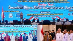 “Peran serta seluruh masyarakat sangat penting dalam penanganan penyalahgunaan narkoba, baik lembaga maupun perorangan harus bisa menjadi agen informasi bahaya narkoba dilingkunganya,” kata Prof Saiful Anwar Matondang di acara Simposium Bela Negara Humanis FKBNI (Forum Komunikasi Bela Negara Indonesia) yang digelar di Aula Raja Inal Siregar, Kantor Gubernur Sumut, Rabu (18/6/2025).