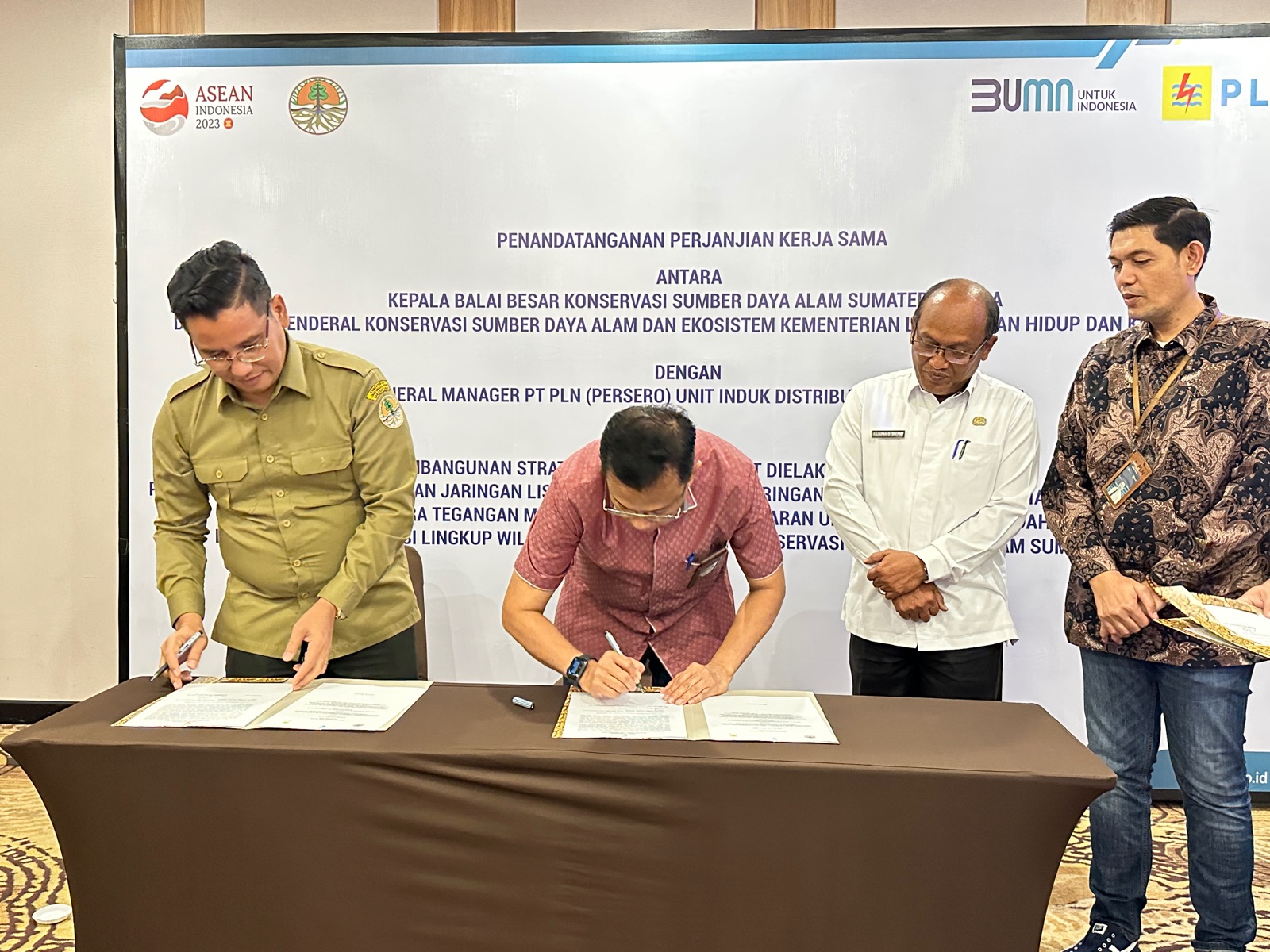 Penandatanganan ini dilakukan oleh General Manager PLN UID Sumatera Utara Awaluddin Hafid bersama Kepala Balai KSDA Sumatera Utara, Rudianto Saragih Napitu, S.Si., M.Si di hotel Santika Dyandra Premiere (31/5).