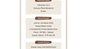 Guna mendukung hal tersebut. Dewan Pimpinan Wilayah Partai Solidaritas Indonesia Sumatera Utara akan menggelar vaksinansi masal bagi masyarakat Kota Medan, pada hari Jumat 04 Maret 2022. Berikut jadwal lengkap serta lokasi dan persyaratan nya sebagai berikut.