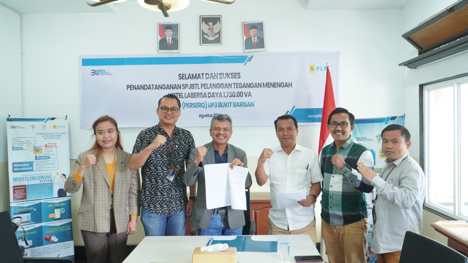Berastagi – PLN Unit Pelaksana Pelayanan Pelanggan (UP3) Bukit Barisan memperkuat layanan kepada pelanggan potensial dengan melakukan penandatanganan Surat Perjanjian Jual Beli Tenaga Listrik (SPJBTL) bersama Hotel Labersa yang berada di Kabupaten Samosir, Sumatera Utara, pada Jumat (23/8). Perjanjian ini mencakup penyediaan pasokan listrik dengan daya 1.730.000 VA untuk mendukung operasional hotel tersebut.