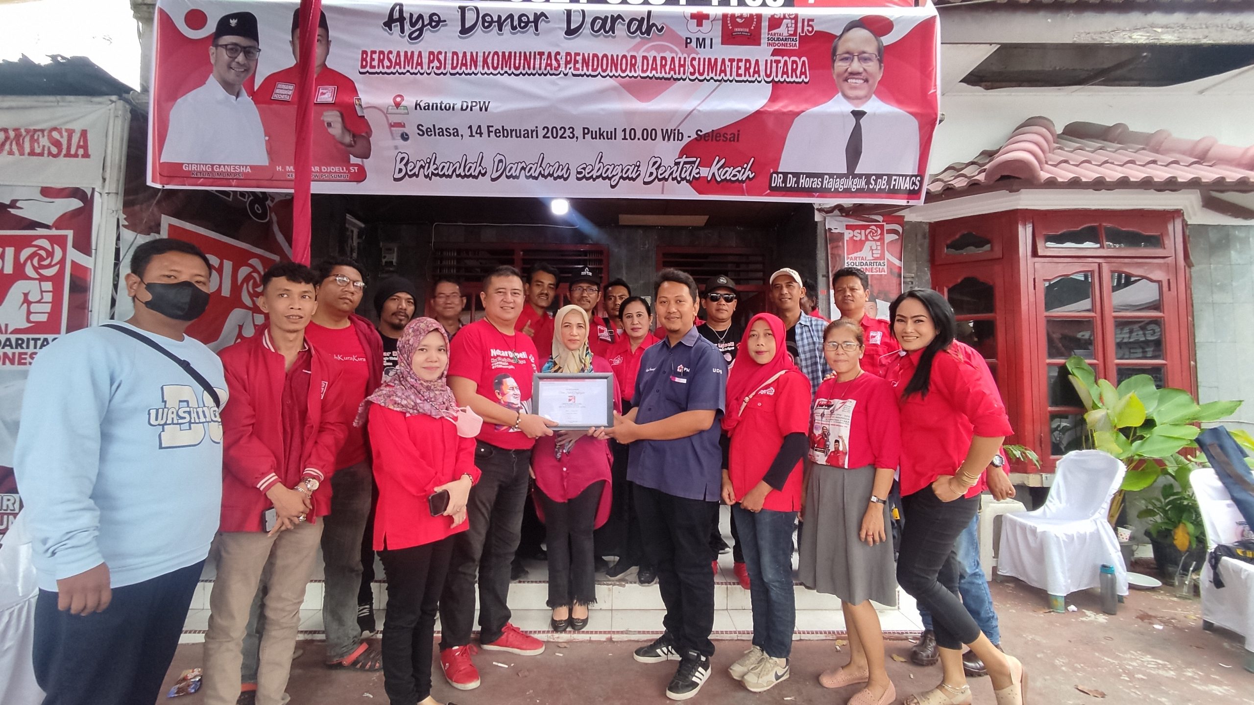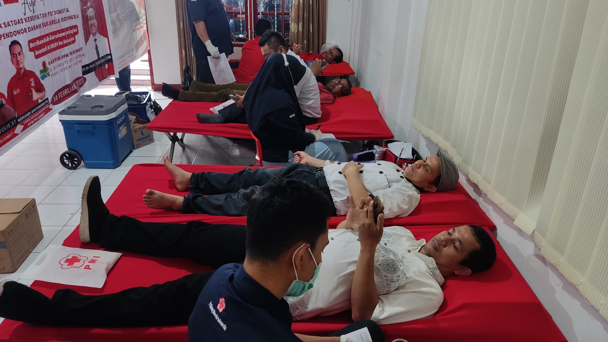 Medan – Dewan Pimpinan Partai Solidaritas Indonesia Sumatera Utara menggelar aksi donor darah bersama Satgas Kesehatan PSI Sumut dan Komunitas Pendonor darah Sukarela Indonesia. Kegiatan ini merupakan aksi solidaritas sebagai bentuk membantu masyarakat melalui Palang Merah Indonesia dalam memenuhi kebutuhan darah khususnya di Kota Medan.
