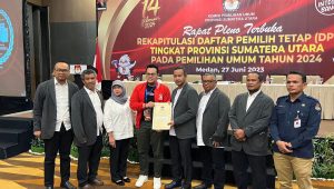 Medan – Komisi Pemilihan Umum Provinsi Sumatera Utara menggelar rapat pleno terbuka rekapitulasi Daftar Pemilih Tetap (DPT) Tingkat Provinsi Sumut pada Pemilu 2024. Tercatat sebanyak 10.853.940 pemilih di Sumut memiliki hak suara.