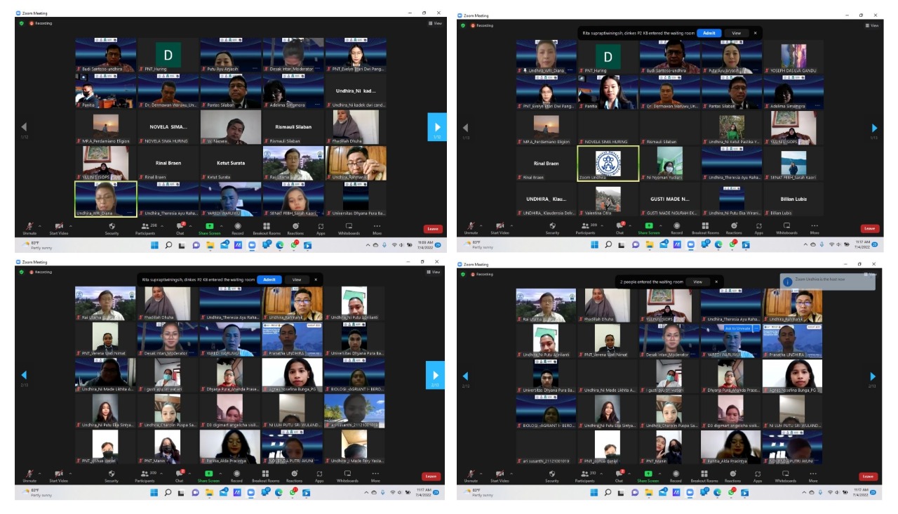 Webinar Nasional tersebut menghadirkaan berbagai Narasumber yang luar biasa serta berkompeten di bidangnya dan dibuka langsung oleh, Dr. Ni Made Diana Erfiani, S.S., M.Hum selaku Wakil Rektor Bidang Akademik, Riset, Inovasi, Kemahasiswaan, dan Alumni UNDHIRA.