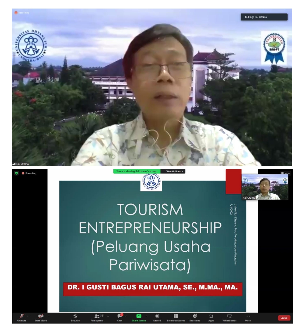 BALI – Tim peneliti Universitas Dhyana Pura (UNDHIRA) Bali melaksanakan Webinar Nasional Senin, 4 Juli 2022 di Denpasar Bali. Kegiatan itu digelar secara hybrid menggunakan media zoom dengan mengusung tema “Tourism Entrepreneurship dalam Pengembangan Destinasi Pariwisata Super Prioritas”.