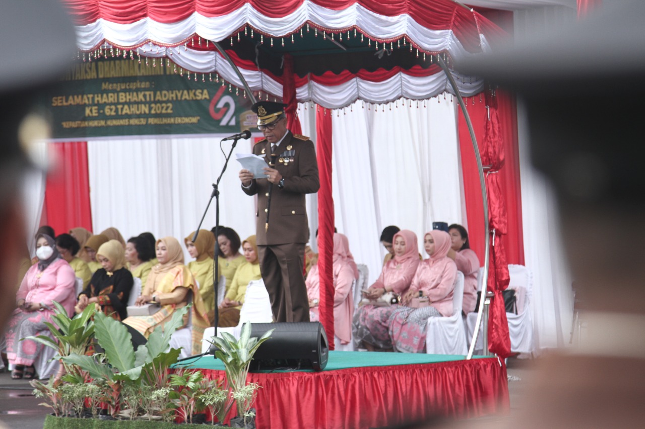 MEDAN – Kepala Kejaksaan Tinggi Sumatera Utara Idianto, SH,MH memimpin upacara peringatan Hari Bhakti Adhyaksa (HBA) yang ke-62 di lapangan upacara kantor Kejati Sumut, Jalan AH Nasution Medan, Jumat (22/7/2022).